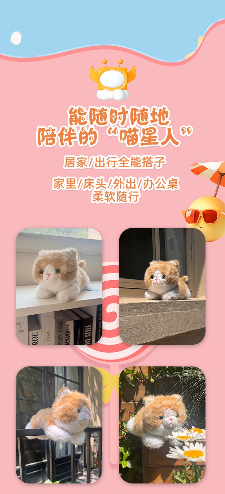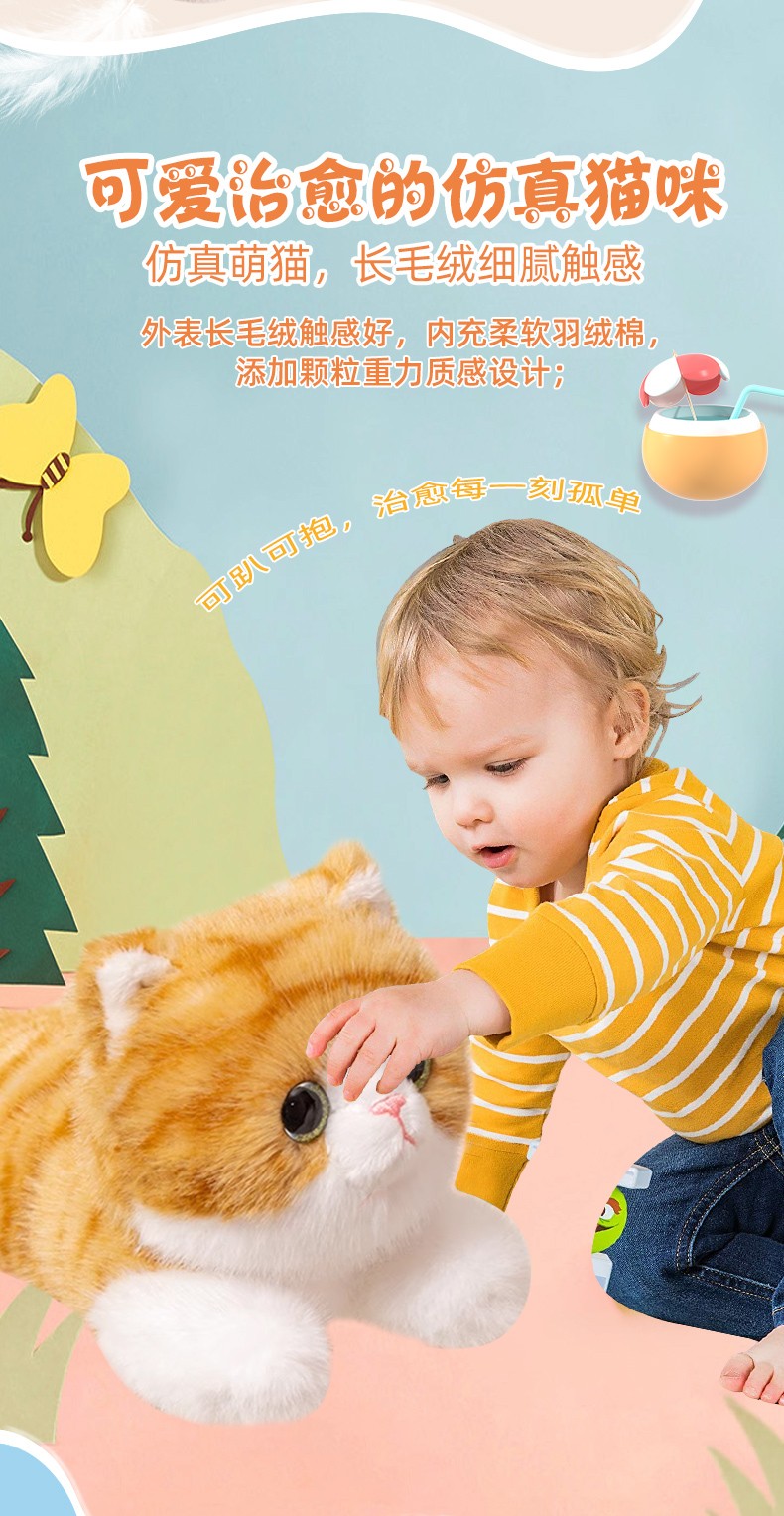 屋伴AI黄色仿真猫咪玩偶娃娃毛绒玩具玩偶趴睡抱枕