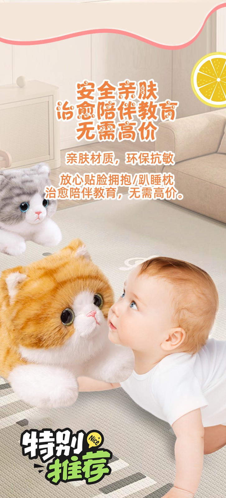 屋伴AI灰色仿真猫咪玩偶娃娃毛绒玩具玩偶趴睡抱枕